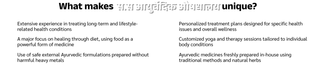 At S.S. Ayurvedic Hospital, we specialize in treating health conditions through customized Ayurvedic treatment programs designed to heal the body, restore balance, and enhance overall vitality